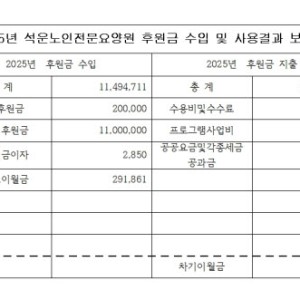 # 2025년 후원금 수입.사용 석운노인전문요양원...