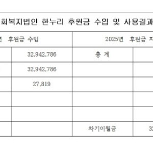 # 2025년 후원금 수입.사용 사회복지법인 한누리...
