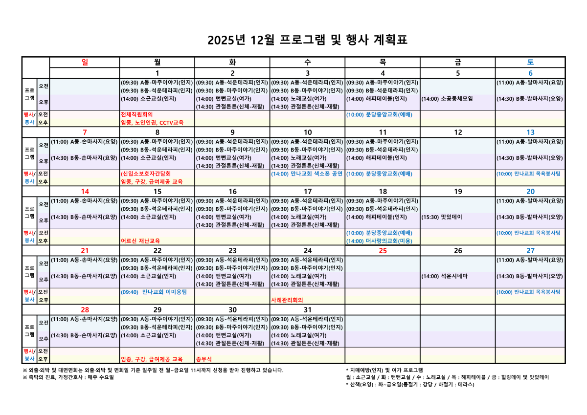 [행사프로그램] 2025년 12월 프로그램 및 행사 계획표 페이지 정보 작성자최고관리자 조회 29회 작성일 2025-12-03 10:55:51 댓글 0 list_alt목록 본문 다음글2025년 11월 프로그램 및 행사 계획표 arrow_forward list_alt 댓글 0 등록된 댓글이 없습니다.
