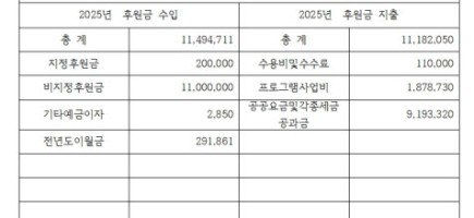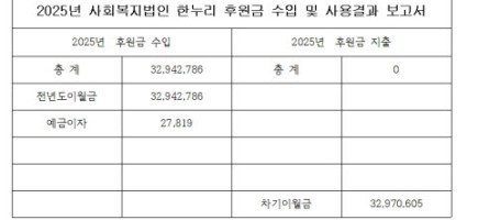 # 2025년 후원금 수입.사용 사회복지법인 한누리